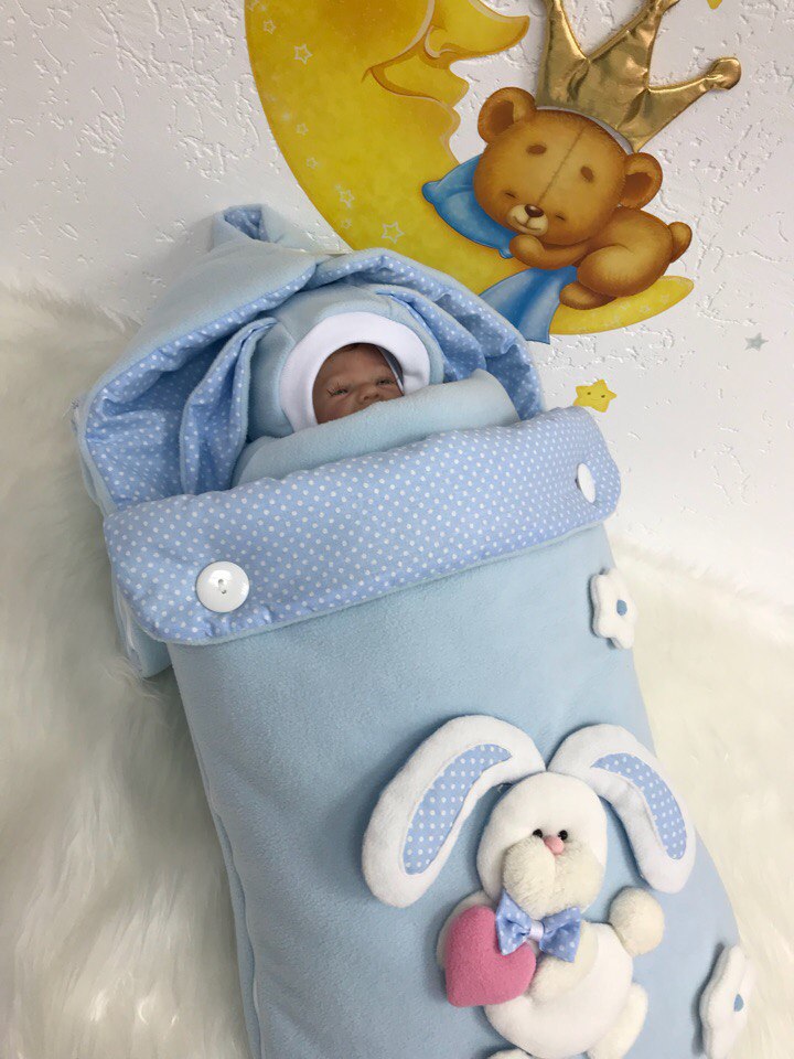 Состав используемых материалов при пошиве данного набора: флис, трикотажное полотно - 100% хлопок, бязь - 100% хлопок, утеплитель синтепон 200 гр (оптимальный слой для демисезонного набора для выписки весной или осенью.) А отдельно конверик без одеялка или наоброт одеялко без конвертика можно использовать и на летних прогулках в прохладную погоду!