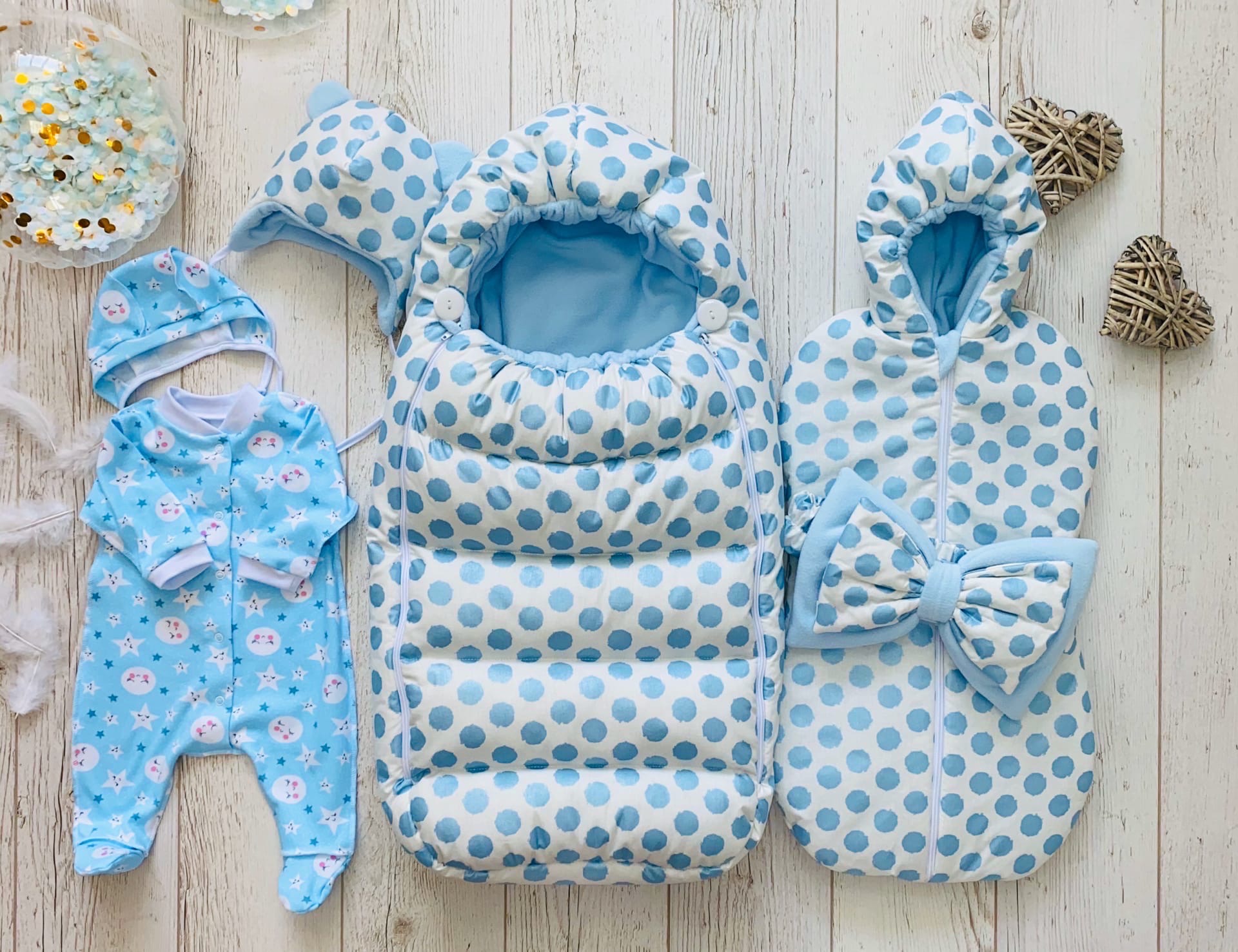 В нем есть все необходимое для выписки из роддома и для прогулок в любую погоду с осени по весну. Поэтому можно смело выбирать набор "Одуванчик" с ноября по март.