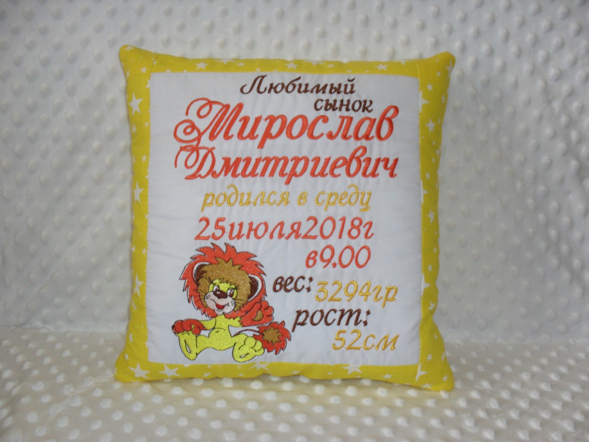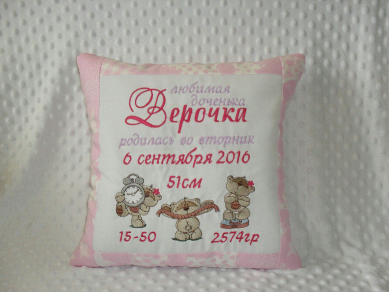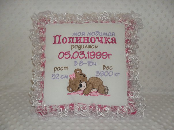 Ниже представлены примеры Метрики для новорожденных. Такую метрику можно изготовить практически на любом изделии! Мы практикуем в основном на подушечках и в рамочках, но по желанию клиента шьём и на бортиках в кроватку и на постельных комплектах!